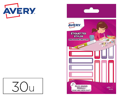 Étiquette stylos avery ultra résistante pour identifier matériel scolaire coloris bleu sachet 30 unités